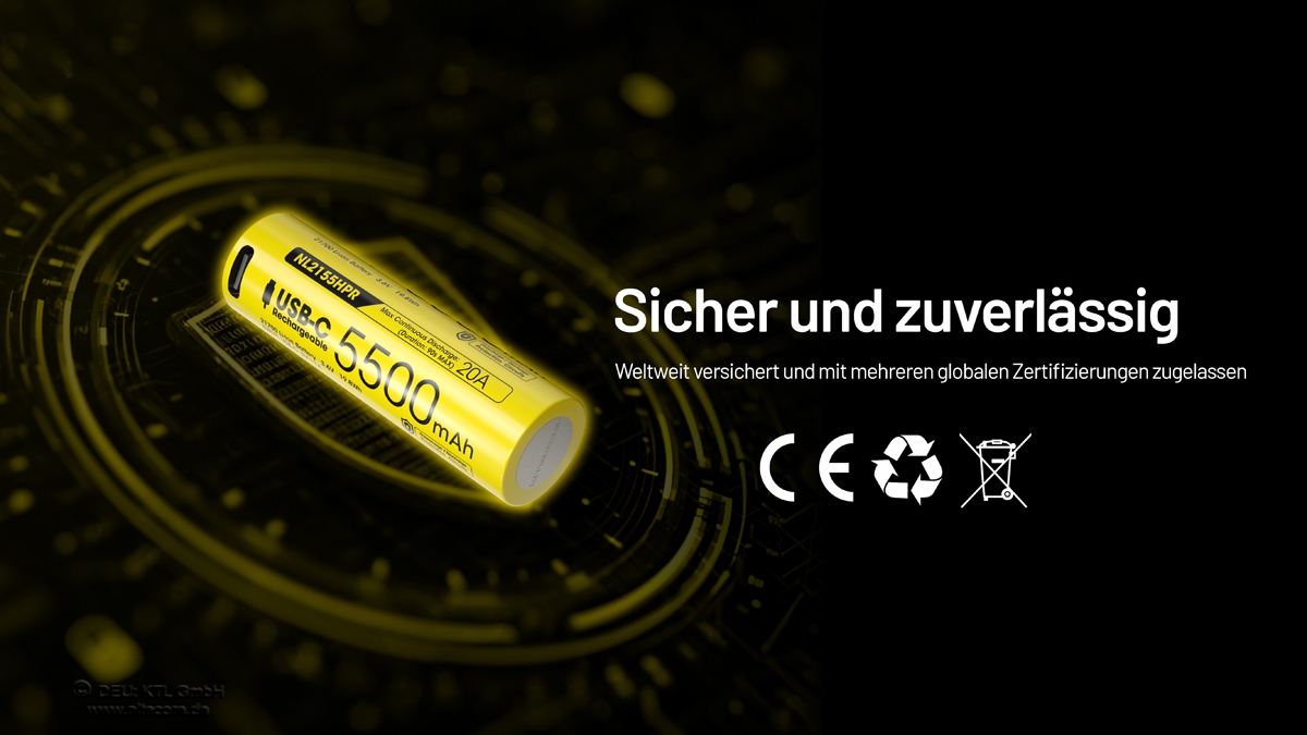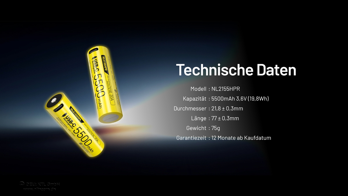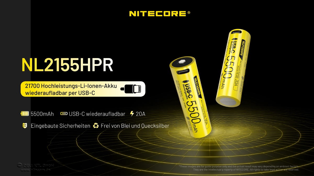 Der neue Nitecore Li-Ion Akku Typ 21700 NL2155HPR hat eine Kapazität von 5500mAh und kann einen Endladestrom von bis zu 20A leisten.
