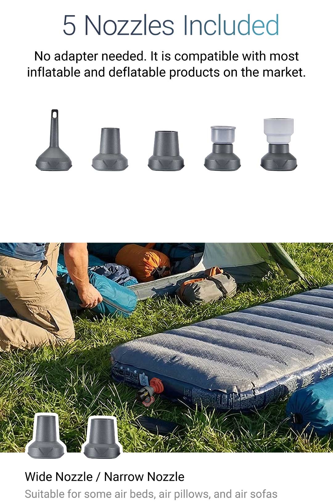 Zubehör: 5 Düsen für gängige Ventiltypen - passend für Luftmatratzen, Vakuumbeutel, ReiseKissen etc.