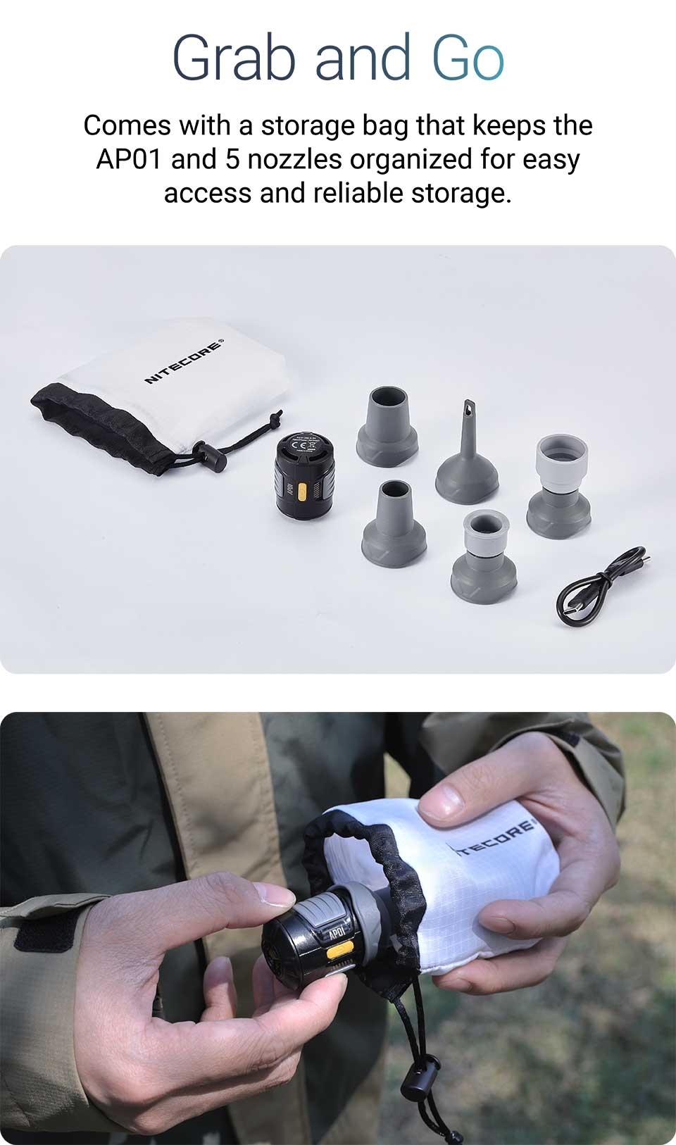 Lieferumfang: Nitecore AP01, 5 Düsen, 1 x Aufbewahrungsbeutel