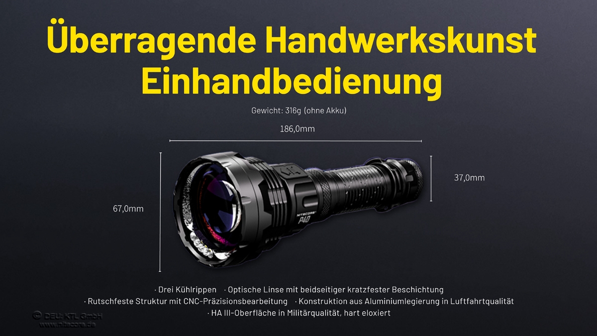 Die neue Nitecore P40 ist eine LEP-Laser Taschenlampe mit 2000 Lumen Lichtleistung und einer maximalen Leuchtweite von 2900 Metern.