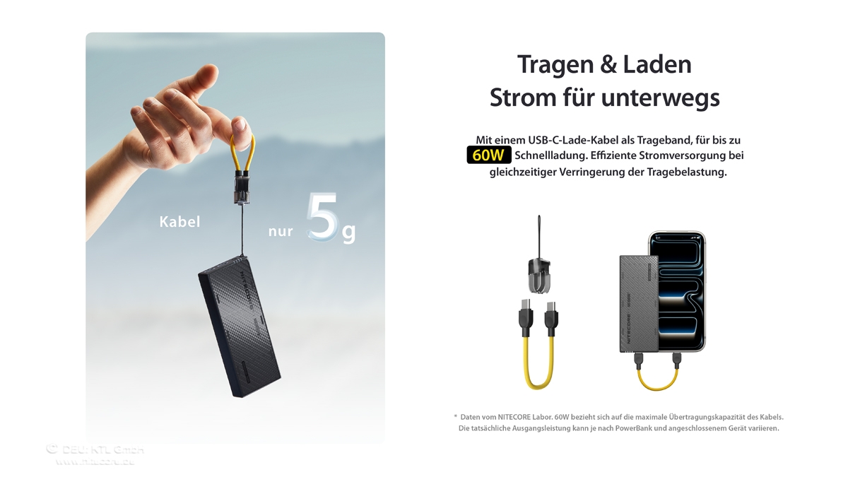 Lieferumfang: Nitecore NB10000G4, Ladekabel als Lanyard